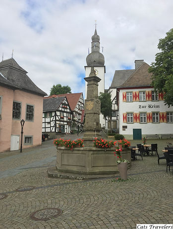 От монастыря путешественнику стоит идти наверх к рыночной площади по главной улице, с обоих с торон которой стоят старинные фахверковые дома. На рыночной площади возвышается колокольня - визитная карточка Арнсберга и единственная сохранившаяся от первоначальной крепостной стены города башня.