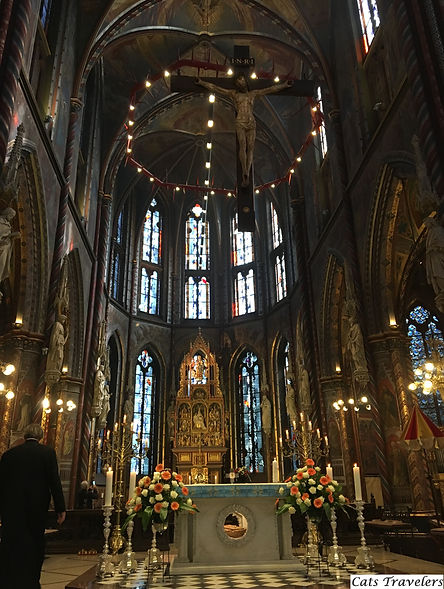 Выйдя на соборную площадь Кевелара, мы были поражены увиденным. В центре площади стоит маленькая капелла с иконой Божьей Матери, которая явилась на этом месте одному купцу в середине 17 века. С течением времени эта капелла стала местом паломничество многих католиков.